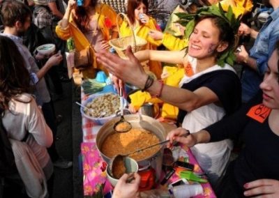 This peculiar international street festival is entirely based on gratuitousness and is a popular event that allows people to get together, enjoy aromas, smells and memories, ancient customs and traditions “betrayed and transformed” around pots and bowls. Soup becomes a pretext for creating sociability, living in everyone’s urban space to create a joyful renewal of a “common metropolitan being”. Soup is in fact the only dish common to all peoples and all cultures, it has poor and popular origins and can be reinvented in an infinite number of possible ways.
