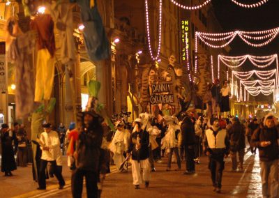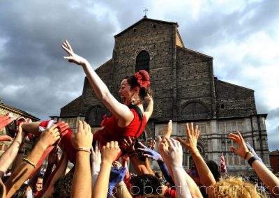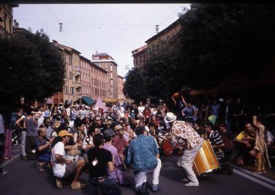 The last edition of the “big” Par tòt Parade took place in 2013 in the suburbs Pilastro, reversing the course: “The centre is where we are”, following the motto “it is NOT dangerous to lean out”.