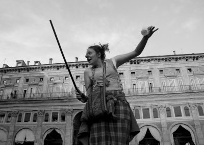 In the beginning there was the FEST-FESTival/Bologna Interculture Festival in the outskirts of Bologna. In 2001, a hundred or so musicians, stilt walkers, children on painted bicycles, and people with clay cups around their necks, set off to cross the bridge to inform the whole city, and especially ‘those in the centre’, of its existence. The three workshops, strictly free, that had preceded the first Par Tòt (“for everyone” in the Bolognese dialect) grew to 60 workshops and 35,000 participants, in an impetus that almost overwhelmed the organisers.